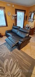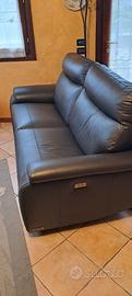 Divano in pelle nera tre posti un metro x 2 con due reclainer relax elettrico Poltronesofà usato usato poco, con garanzia fino al 10-2029 contro macchie danni accidentali strappi graffi buchi e malfunzionamenti e Rotture dei meccanismi, più kit per la manutenzione della pelle , certificati e documenti alla mano