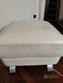Vendo divano due posti con finiture in acciaio, in vera pella più pouf buone condizioni Misure divano lunghezza 200 cm profondità 100cm Misure pouf cm 70x70