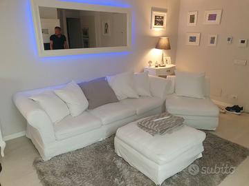 Divano modello President, in tessuto cotone/Alcantara Banco con cuscini e imbottitura di pregio in piumino. Dimensioni 2.35 x90 h 70