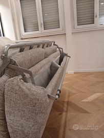 vendesi divano prontoletto in tessuto buclet grigio - tonalità media. Dimensioni chiuso: larghezza cm 220, profondità cm 95, altezza cm 80. dimensioni da aperto: larghezza rete cm 160 x 195; il materasso è spesso cm 12. il divano è in buonissime condizioni , sia nella struttura che nel tessuto. il rivestimento del divano è sfoderabile ed e stato lavato dopo l'estate scorsa, ed il materasso non presenta macchie.