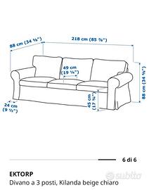 Vendo divano Ikea Ektorp 3 posti, sfoderabile, molto comodo. Compreso puf senza fondo. Sostegno a molle. Segni di usura sui braccioli. Misure vedi ultima foto.
