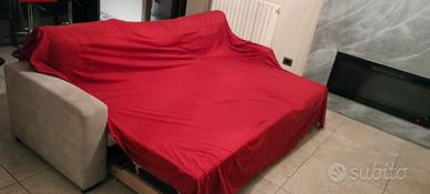vendo divano 4 posti con penisola con meccanismo rotto per scendere . misure 232 x 80 x 142 . in tessuto grigio su dei punti rovinato . con il telo rosso appoggiato non si vede nulla. cuscini compresi bianchi e neri . ritiro in loco a Varallo Pombia .