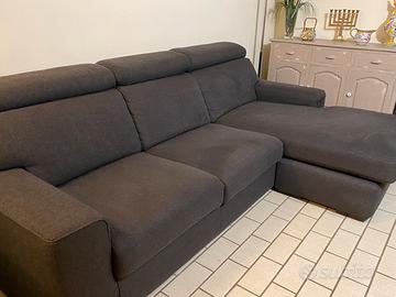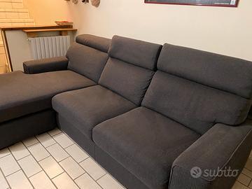 Vendo divano quattro posti maxi seduta lunga, con penisola interscambiabile a sinistra o a destra e pouf grande di Poltronesofa’, in tessuto sfoderabile color grigio scuro con poggiatesta reclinabili. Divano 103 x 253x 105/166 Pouf 45x 90x 64