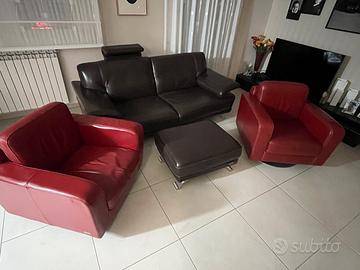 Divano 3 posti in pelle e coppia di poltrone in pelle girevoli. Buone condizioni. Marca Marinelli Vendibili in blocco o singolarmente Trasporto a carico dell'acquirente