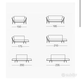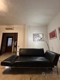 Cuscini in poliuretano espanso quote differenziate e fibra poliestere, rivestiti con tela di cotone bianca. Rivestimento in pelle nera.