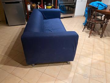Divano IKEA tessuto blu sfoderabile. Dimensioni 175 cm lunghezza x 66 cm altezza. Seduta 143 cm , altezza schienale 30 cm. Con piedini
