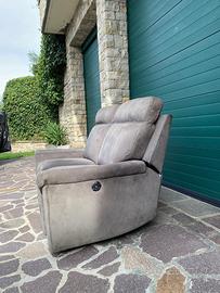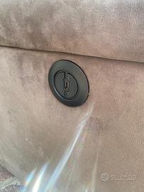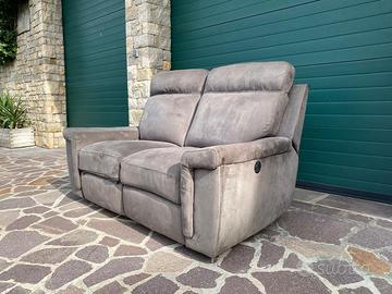 Vendesi divano 2 posti con movimento recliner elettrico separato per ogni posto a sedere, due prese USB integrate per ricarica smartphone tablet. Colore grigio.