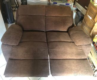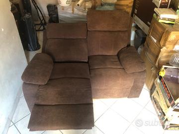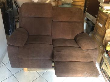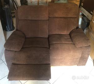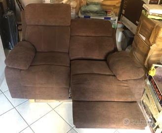 Divano reclinabile a due posti in tessuto marrone