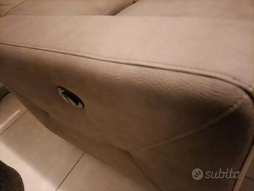 Vendo divano reclinabile perfettamente nuovo, usato pochissimo, causa trasloco,con due posti reclinabili in perfette condizioni color marrone scuro/grigio,senza difetti.Misura cm 195 lunghezza per 110cm larghezza, quando è chiuso, prezzo 600€ pagato 800€