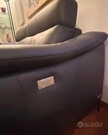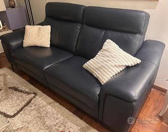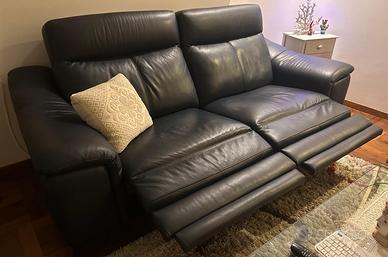 Divano in pelle colore blu in ottime condizioni generali. Con due meccanismi relax e poggiatesta regolabili.