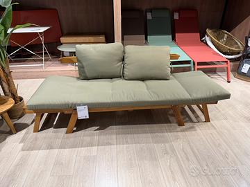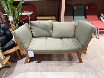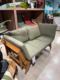 Divano Relax da giardino 3/4 posti in legno di acacia e poliestere color verde kaki Trasformabile in letto Lunghezza 220 cm, Profondità 75 cm, Altezza 89 cm Imballato originale Vendo per errato acquisto Gestisco spedizione