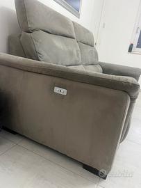 Divano LUCY 3 posti con doppio recliner dx e sx made in italy comprende anche due prese USB per poter ricaricare il tuo telefono cellulare stando comodamente seduto.