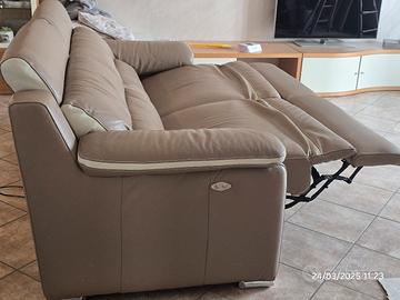 Vendo divano con apertura relax in vera pelle come nuovo,piccoli segni di usura causati da gatti sul bracciolo e testata.