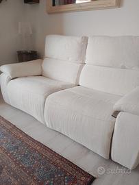 Divano due posti con telecomando per posizione relax vendo causa cambio arrdamento. completamente sfoderabile usato pochissimo, vendo anche due puff identici al divano stesso.