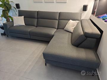 Divano relax della Samoa Divani modello Space Fly con sedute reclinabili elettricamente in maniera indipendente. Colore grigio antracite, dimensioni: 312cm x 205cm