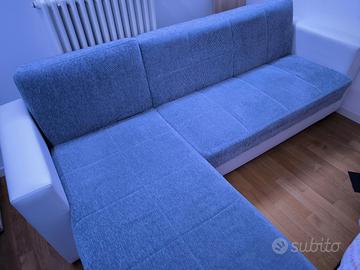 divano con penisola lunghezza totale 225 cm, la penisola si sviluppa in larghezza per 150 cm. possibilità di avere anche pouff in regalo. la seduta del divano si alza ed è possibile utilizzare lo spazio per vestiario, lenzuola ecc