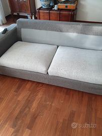 Ottime condizioni, usato in casa senza animali, tutto sfoderabile e lavato ultimamente. Il doppio colore è una mia idea fatta successivamente comprando e facendo fare su misura le fodere dei cuscini. Naturalmente ho ancora le fodere originali, in ottime condizioni, uguali al rivestimento esterno.