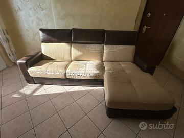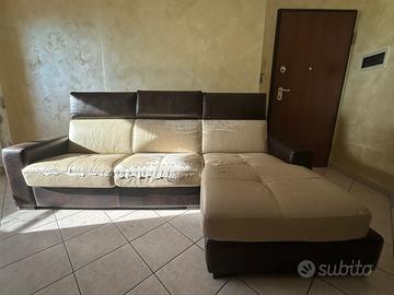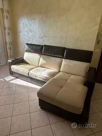 Divano in vera pelle ed eco pelle, la parte in eco pelle è da rifoderare perché danneggiata o da coprire con copridivano, poggia testa e braccioli in vera pelle in condizioni ottime,valore d'acquisto 3.700?