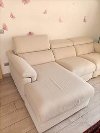 Causa trasloco primi di febbraio vendo Divano poltronesofa in tessuto color panna 4 posti con una seduta lunga e le altre scorrevoli, tutti gli schienali sono reclinabili. Acquistato nel settembre del 2023 tenuto in perfetto stato sempre coperto.