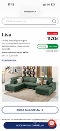 Vendesi divano mondo convenienza modello Elisa inizio 2023. Divano letto con doppia penisola colore verde petrolio in ottimo stato. Prezzo richiesto 800€ trattabili