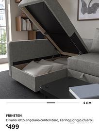 Vendo divano letto angolare IKEA FRIHETEN colore grigio chiaro (Faringe), con contenitore.