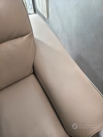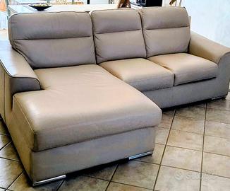 Vendo per passaggio a divano letto, divano Rosini modello Malaga comfort in vera pelle toscana pagato 3800 euro con seduta con 4 cm di Memory foam misure lunghezza cm 240 per cm 150 di larghezza la chaise longe cm 93 altezza divano cm. 92 profondità seduta semplice cm. 60 perfetto tenuto sempre coperto
