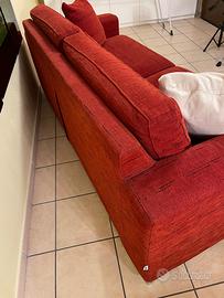 Divano rosso 3 posti completo di 2 cuscini accessori seduta sostenuta Lungo cm2.17. Largo cm 90 Seduta di cm 1.77. Bracciolo largo cm 20