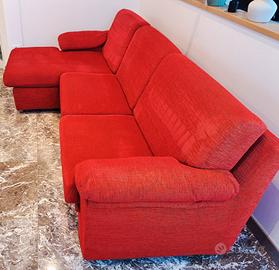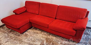 Divano mobilificio Rampazzo Severino con chaise longue in tessuto rosso.