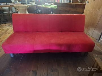 Vendo divano 2 posti rosso in tessuto tipo “scamosciato”, diventa facilmente anche divano letto (lo schienale si abbassa in orizzontale). Ritiro in loco a carico dell’acquirente