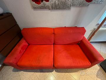 Regalo divano rosso in tessuto per tre persone, misure 2m x 90 cm, tenuto in buone condizioni. Compreso nel prezzo anche il materasso matrimoniale. Trasporto a carico del compratore