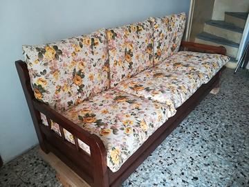 Causa trasloco e inutilizzo vendo divano rustico, robusto, ottimo per tavernetta, chalet montano o per relax davanti la televisione. Cuscini sfoderabili. No divano letto. Astenersi perditempo.