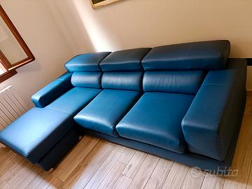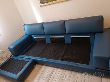 Divano angolare Samoa in ecopelle blu, perfetto per il soggiorno. - Design moderno e confortevole. - Ampia seduta per 3 persone. - Chaise longue integrata. trasporto a carico dell'acquirente con mezzo adeguato lunghezza divano 270 cm