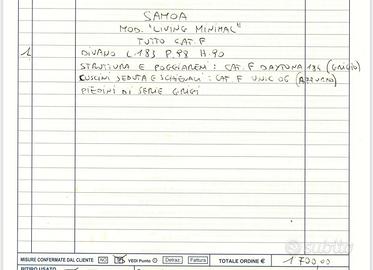 Vendo divano 3 posti Samoa Living Minimal pari al nuovo. Cuscini seduta e schienale in piuma. Nell’ultima foto descrizione completa rivestimenti e misure.