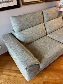 Caratteristiche: Versione in tessuto grigio (completamente sfoderabile), schienali reclinabili, struttura legno, imbottitura poliuretano, piedini design Brim in metallo nichel nero (H 14 cm).