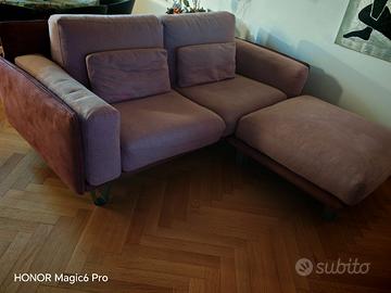 vendo divano+ pouf Samoa completamente sfoderabile bicolore scocca in microfibra colore borgogna e cuscini in rosa antico, piedi alto moderno usato poco.