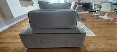 Velluto grigio categoria superior, dimensioni 175x115 (divano biposto) e 115x115 (poltrona monoposto). Possibilità di unirli per creare unico divano tre posti maxi