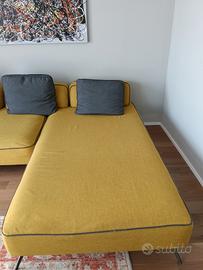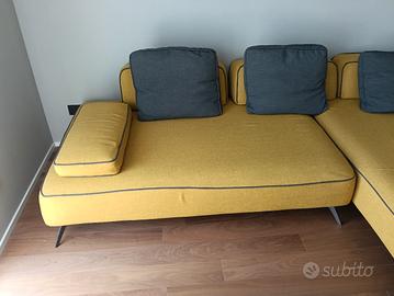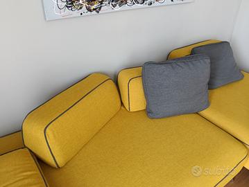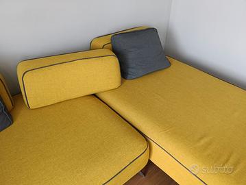 Vendo divano marca Samoa composto da due elementi misure (175x115) e (215x115) colore giallo con profili antracite. Completo di n. 3 schienali mobili, n. 3 cuscini aventi misura (60x50) e un cuscino poggia braccio misura (70x30). Piedi in metallo colore antracite. Il divano è in tessuto sintetico (dettaglio in foto) completamente sfoderabile e lavabile in lavatrice. È tenuto molto bene, non presenta macchie o lacerazioni. Astenersi perditempo o curiosi Alessio