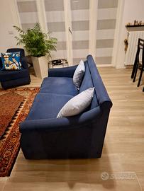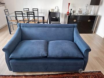 Divano vintage anni ’70 di design, attribuito a Luigi Caccia Dominioni, modello della collezione San Siro (1967). Si tratta di un elegante 2 posti dalle linee pulite e senza tempo, perfetto per ambienti moderni o classici. Struttura solida in legno massello, garanzia di qualità e durata nel tempo. Il divano è stato completamente rifoderato circa 3 anni fa in tessuto Wood blu, mantenendo uno stile raffinato e attuale. Le condizioni sono ottime, pronto da inserire in casa senza necessità di interventi. Dimensioni: Lunghezza: 140 cm Altezza: 77 cm Profondità: 86 cm Ideale per soggiorno, studio o ambiente di rappresentanza. Ritiro a mano a Milano.