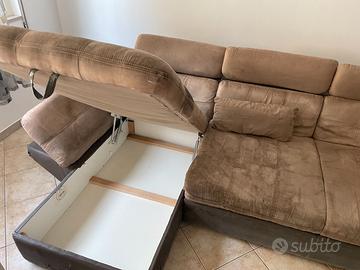 Il divano è usato e il rivestimento della base è leggermente danneggiato. Le sedute e la struttura invece sono in ottime condizioni. Il divano e lungo 3 metri e la chaise longue è contenitiva.