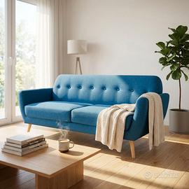 Divano Scandinavo 3 Posti in Tessuto con Bottoni