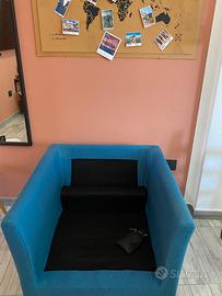 Divano scandinavo OSLO a 2 posti con rivestimento sfoderabile in tessuto blu anatra e legno chiaro + poltrona ..