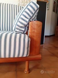 Vendo, per cambio arredamento, divano 3 posti con fodera in tessuto bianco-blu interamente sfoderabile e lavabile in lavatrice, e struttura in legno di ciliegio massiccio.
