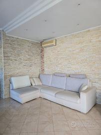 Divano usato 275x170 cm, 4 sedute da 80 cm, completamente sfoderabile e lavabile, bicolore con possibilità di girare gli schienali da bianco a grigio. Acquistato a 1590 euro nel 2016 da Rosin Arredamenti , vendo a 500 euro.
