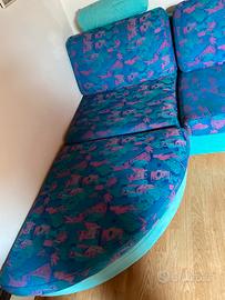 Divano sfoderabile con penisola e poggia testa colore turchese e fucsia circa 260 x 90 cm (escluso penisola) Datato