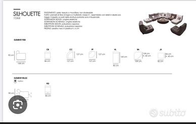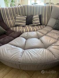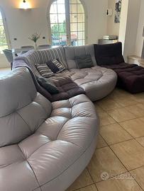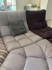 Vendo divano modello Silhouette Chateau d'Ax formato da 3 poltrone singole, un pezzo angolare, 1 pouf a mezza luna, 1 pouf quadrato e una penisola di prolungamento. 6 fodere e/o cuscini di vari colori. Materiale: alcantara, pelle e stoffa Colori: viola, lilla e grigio Il divano è totalmente riconfigurabile per creare infinite composizioni. Valore commerciale da nuovo oltre 7.000 € Trasporto a carico dell'acquirente