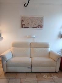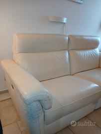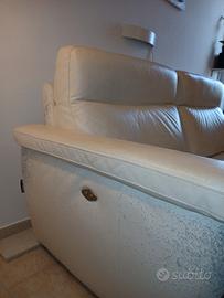 Divano sistema relax motorizzato Chateau d'ax in pelle di vitella color panna usato a 3 posti (due posto larghi equivalente 3 posti). Il meccanismo relax si aziona con i bottoncini ai lati del divano e si inclina quasi come fosse un letto ed è in ottimo stato. L'unico problema che risente sono purtroppo i graffi ai lati e sullo schienale in parete causati dal nostro gatto e con un copridivano tutto si nasconde. solo ritiro a carico dell'acquirente. (prezzo trattabile)