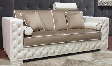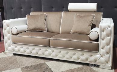 Divano sofa 2 posti Chester new in pelle e tessuto