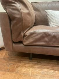 Divano perfetto in pelle invecchiata color tabacco lunghezza tre metri