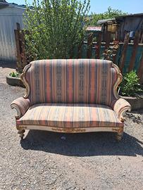 Divano in stile Barocco con tessuto e imbottiture ancora in buone condizioni di conservato.Presenta piccoli difetti del tempo.