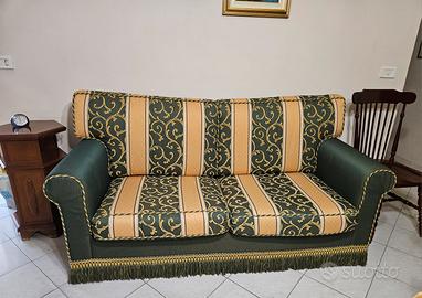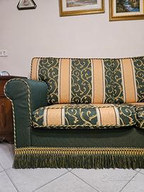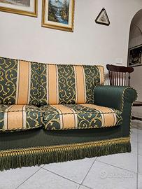 Divano verde e giallo stile barocco , comodo, come nuovo. 3 posti lunghezza 180 cm , altezza complessiva 90 cm , altezza bracciolo 63 cm